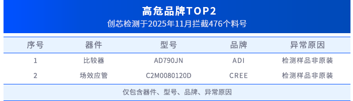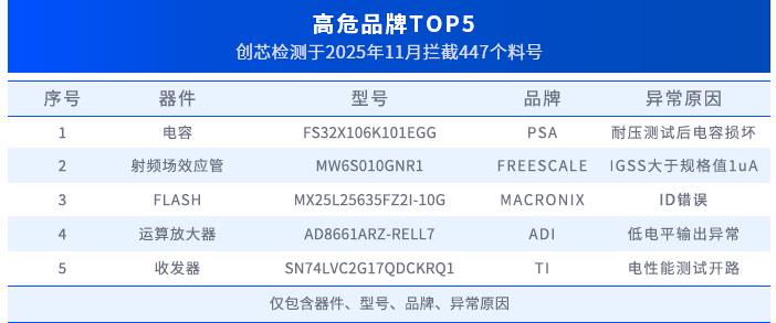 創(chuàng)芯檢測 | 11月元器件檢測異常分析報(bào)告